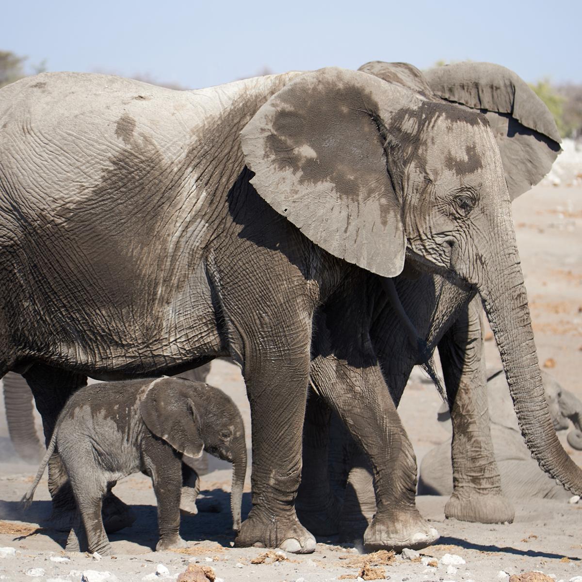 A baby elephant with parents | Etosha National Park | Namibia